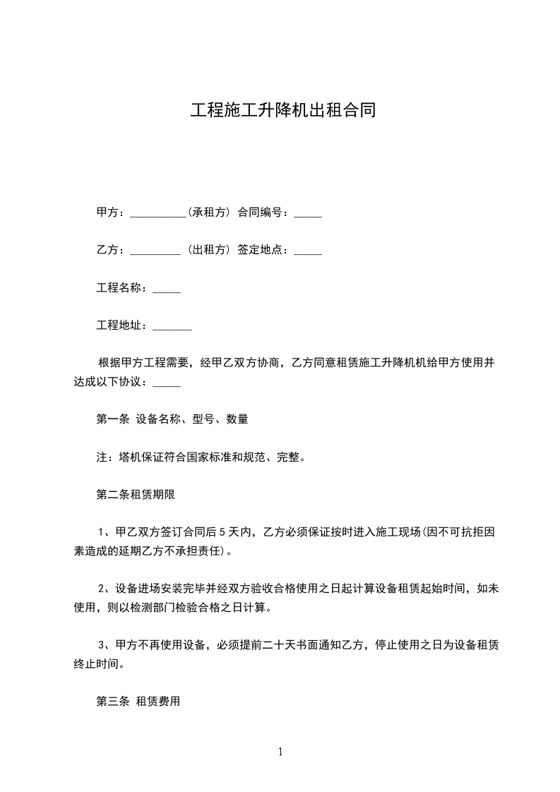 一、设备名称:施工升降机