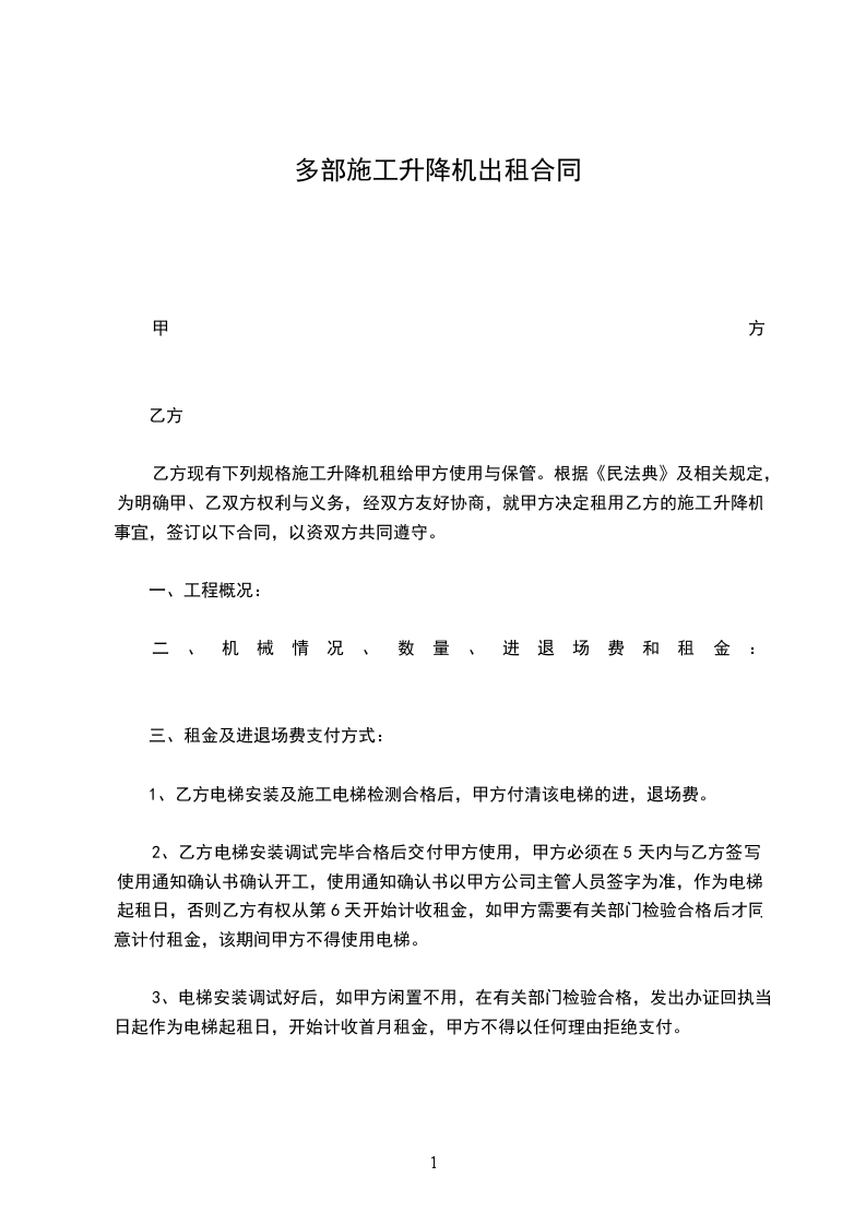 5、由甲方或开放商造成设备停用,甲方最少按70%支付给乙方台班费。