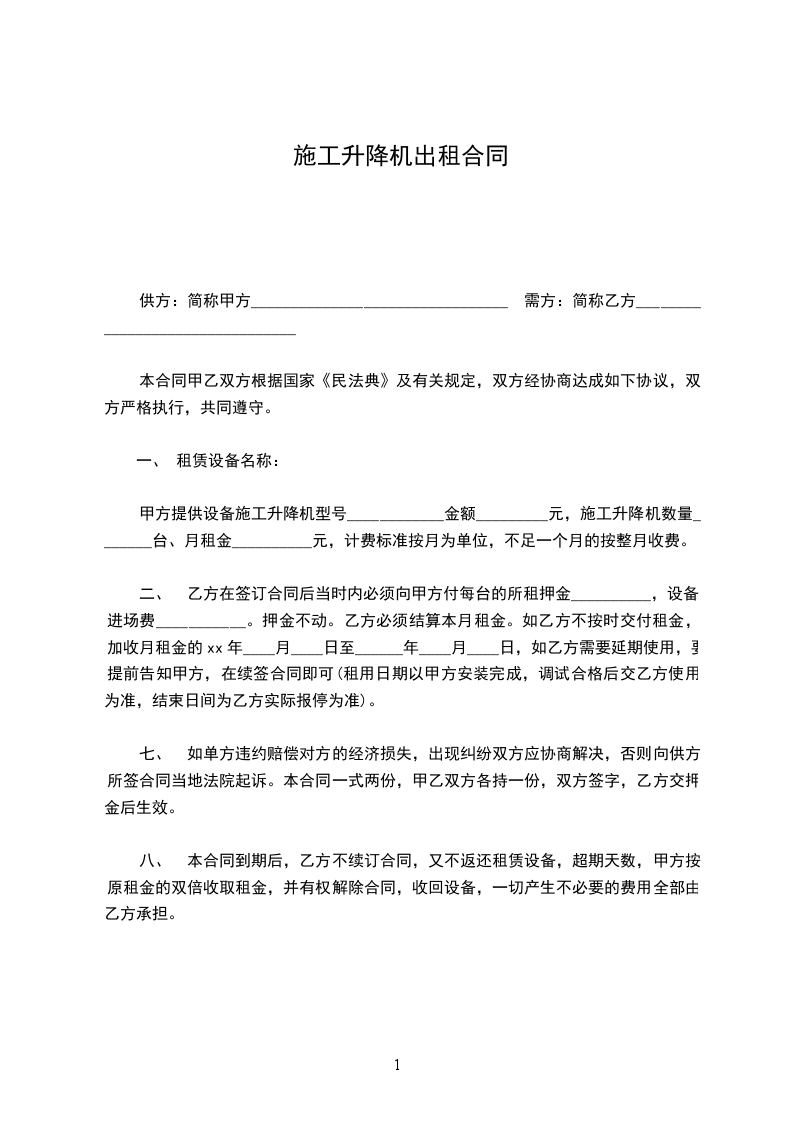 1、乙方必须保证设备的完好,出现故障及时排除,经常保养,以保障甲方的施工需要。