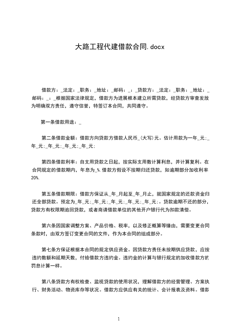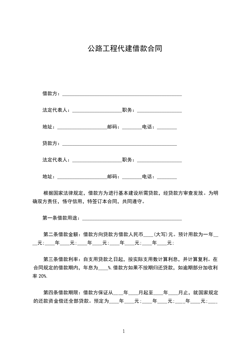 借款人因_________公路建设项目,向借款人申请人民币借款_________万元,期限为_________年。根据我国有关法律规定,经双方当事人平等协商,自愿签订本借款合同(以下简称“本合同”)。