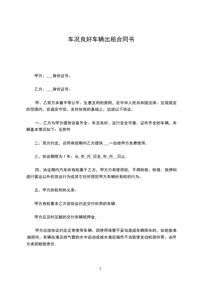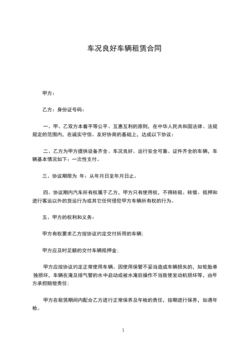 4、甲方对乙方提供的车辆应保障车况良好,所提供的车辆必须在本合同生效后,准时交付乙方使用,若因延误造成乙方的损失,由甲方负责赔偿。