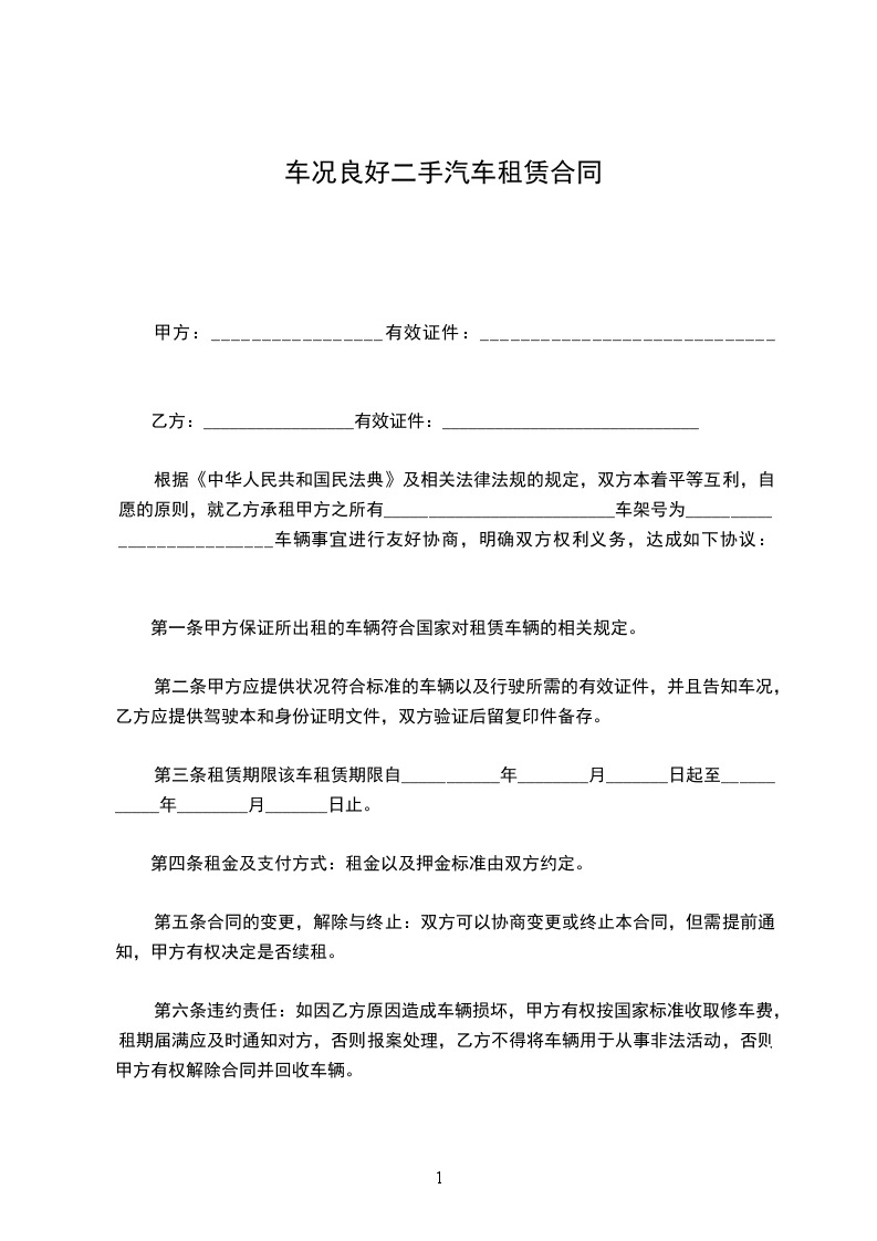 8、乙方保证在使用该车辆过程中从事合法活动,如乙方违法使用该车辆造成甲方损失,责任由乙方全部承担,并且甲方有权随时终止合同。