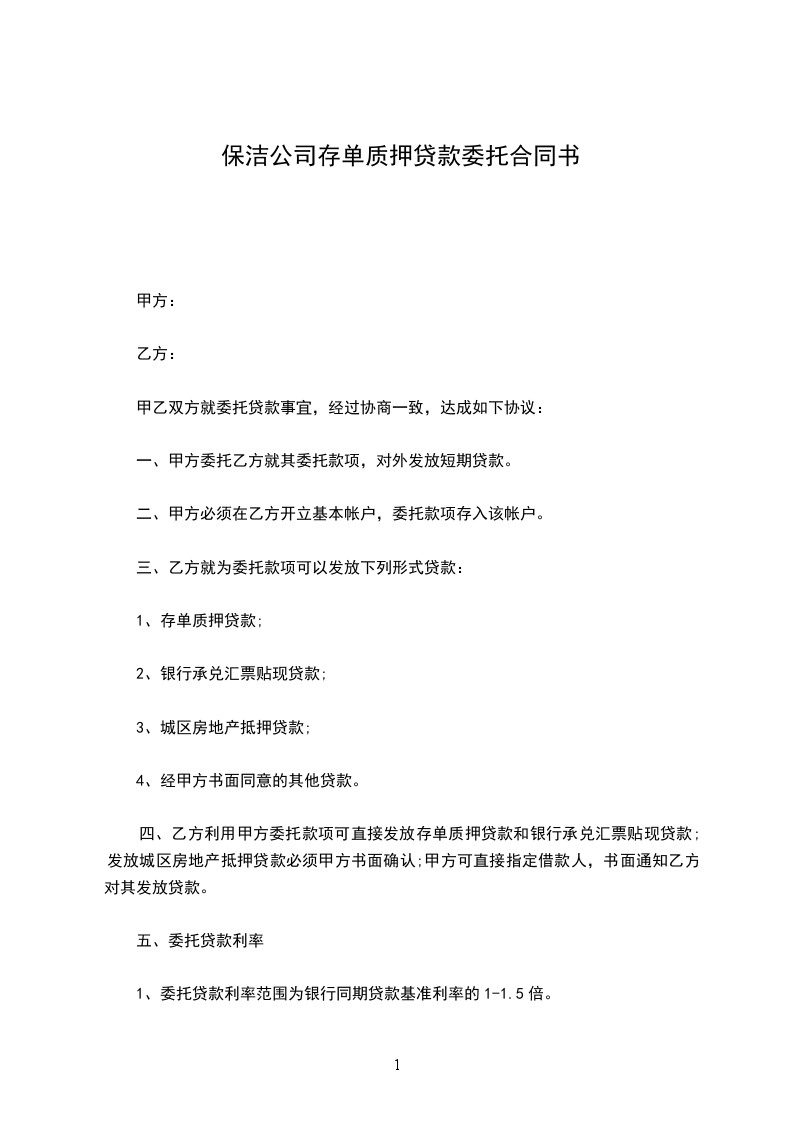 保洁公司存单质押贷款委托合同书