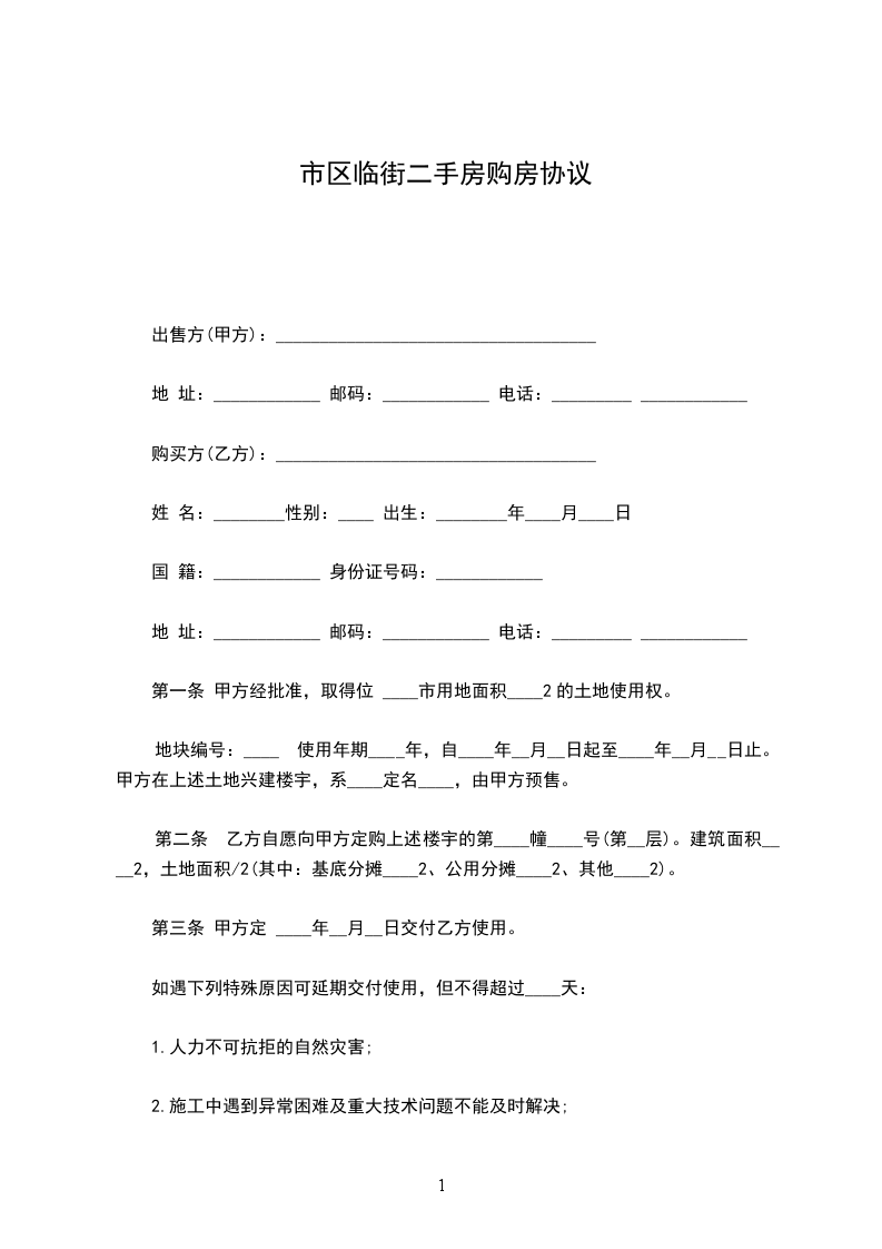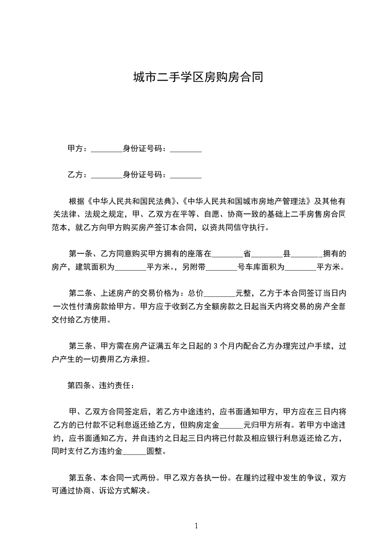 乙方(买受人): 身份证件号码: