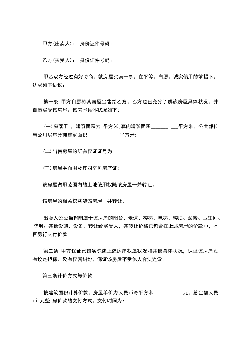 甲方(出卖人): 身份证件号码: