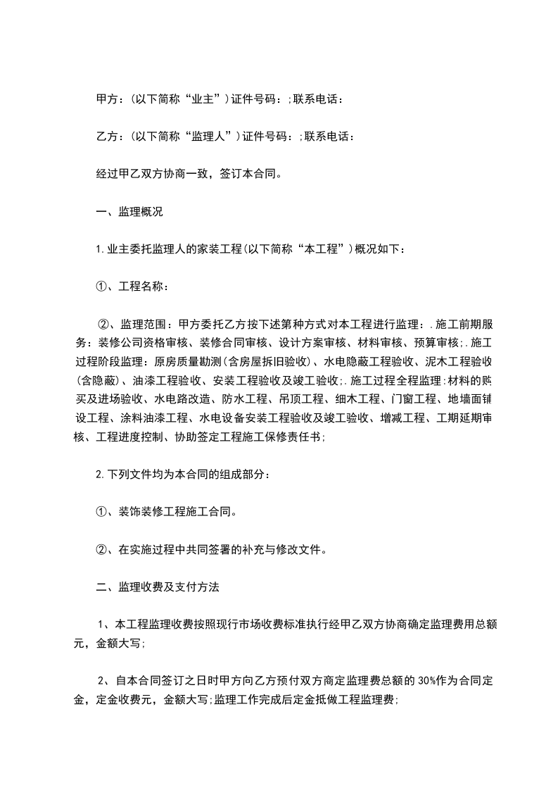 乙方:(以下简称“监理人”)证件号码:;联系电话: