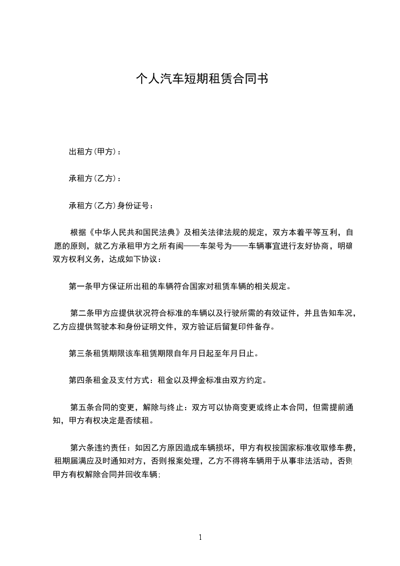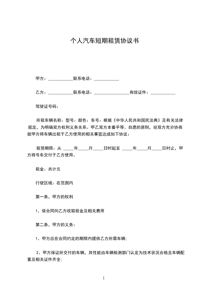 甲方租用乙方的车型为__________________,车牌号:__________________,乙方为该车辆驾驶人。