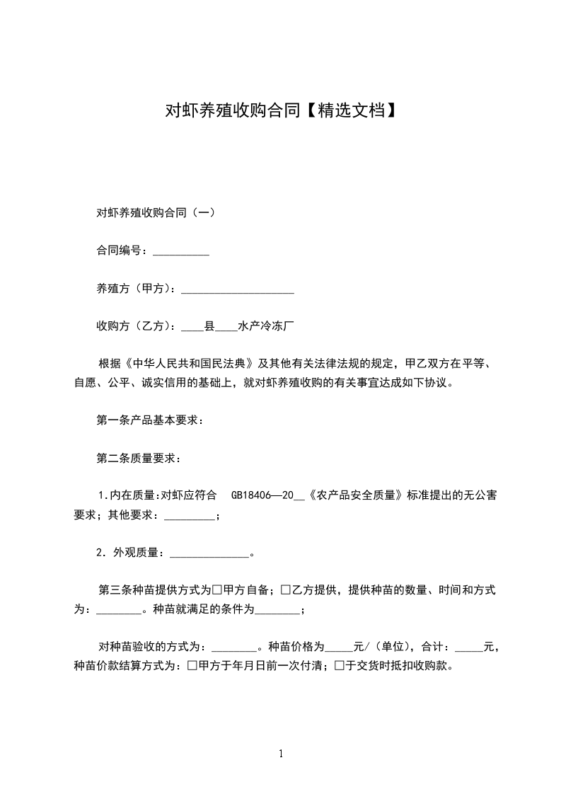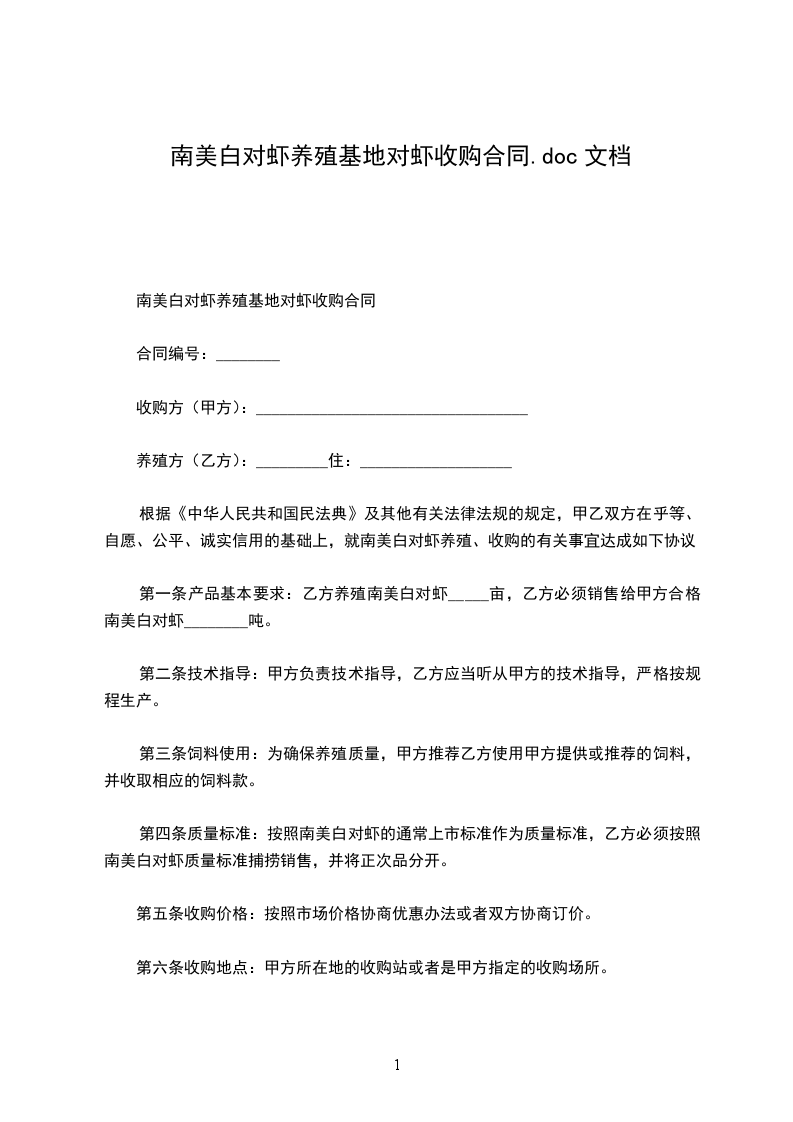 根据《中华人民共和国民法典》及其他有关法律法规的规定,甲乙双方在平等、自愿、公平、诚实信用的基础上,就对虾养殖收购的有关事宜达成如下协议。