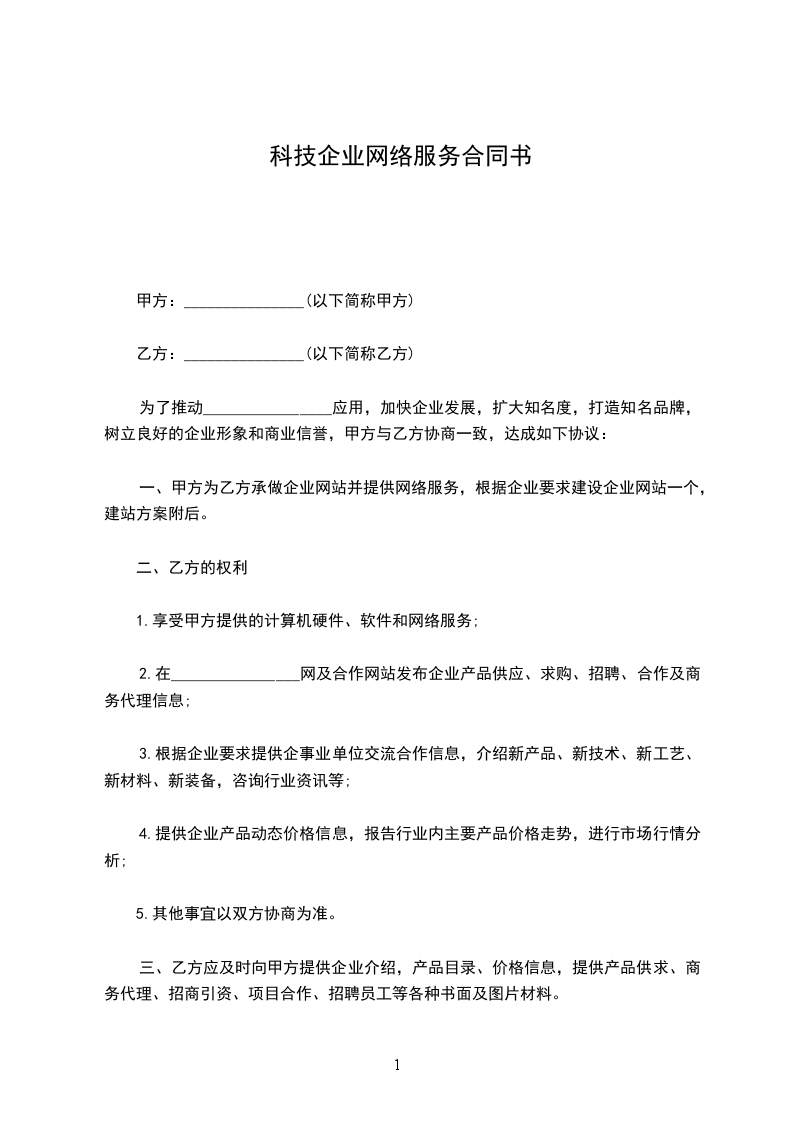 一、甲方为乙方承做企业网站并提供网络服务,根据企业要求建设企业网站一个,建站方案附后。