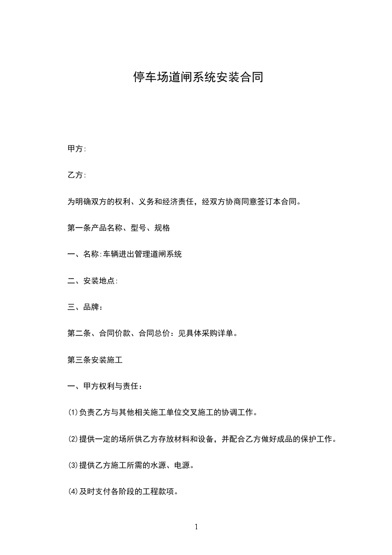 第五条合同价款的支付合同签订后,安装调试完成,通过甲方验收将以转账的方式给予乙方所需道闸款项。