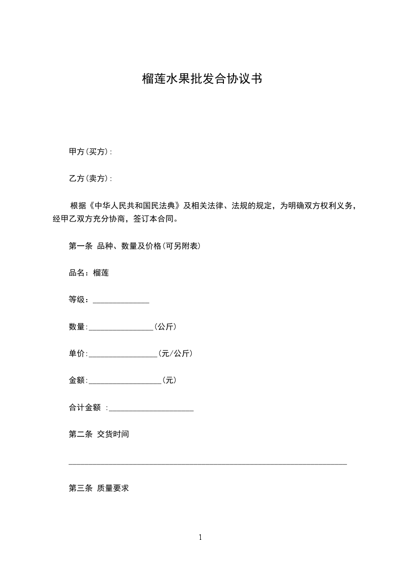 (一)交付的榴莲品种、规格、质量不符合合同约定的,甲方有权拒收。交付榴莲的数量低于合同约定的,乙方应于 天内补齐,由此给甲方造成损失的,乙方应给予相应补偿;交付的数量超出合同约定的,超出部分,甲方有权选择是否接收,甲方同意接收的,则按合同约定的单价计算。