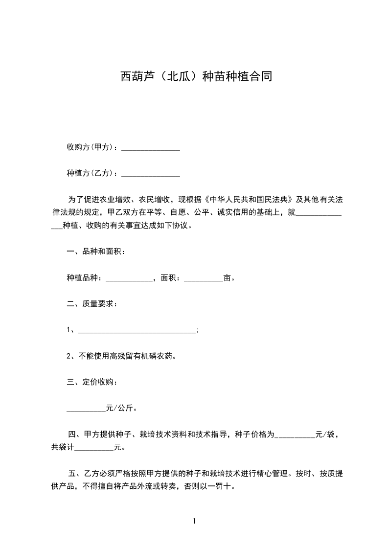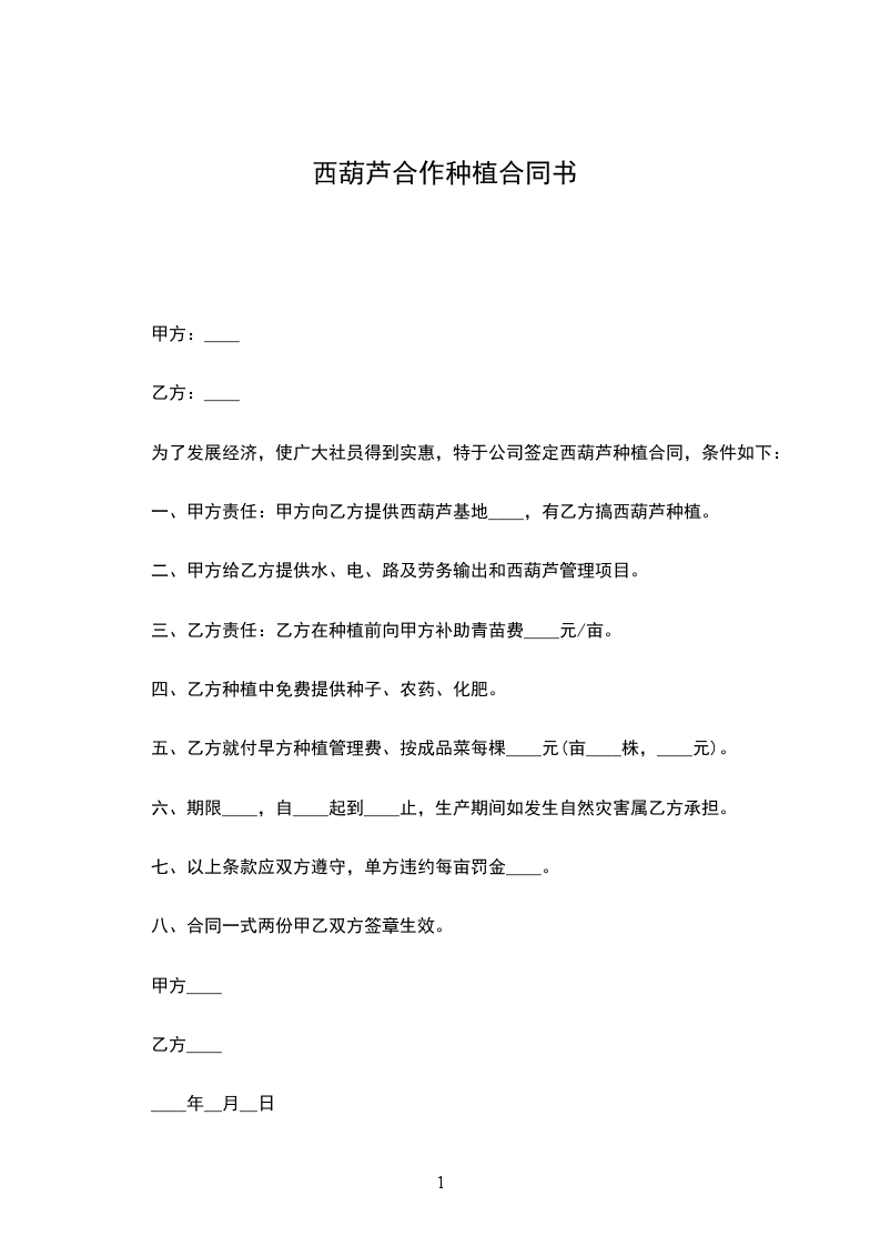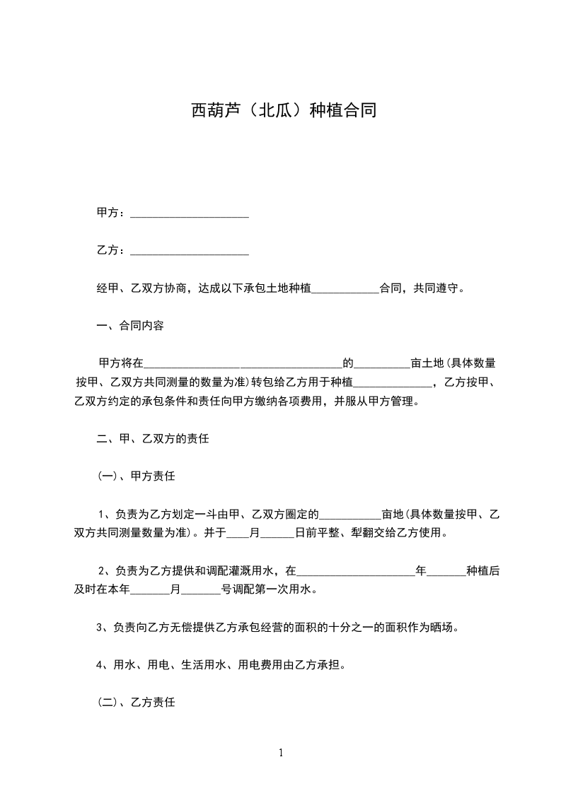 一、甲方责任:甲方向乙方提供西葫芦基地____,有乙方搞西葫芦种植。
