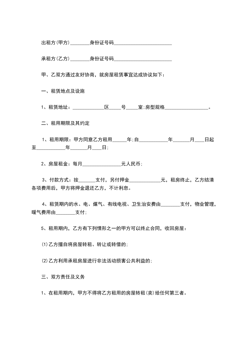 (二)租赁期满,,乙方享有优先承租权。乙方有意继续承租的,应提前▁▁▁日向甲方提出续租要求,征得同意后甲乙双方重新签订房屋租赁合同。