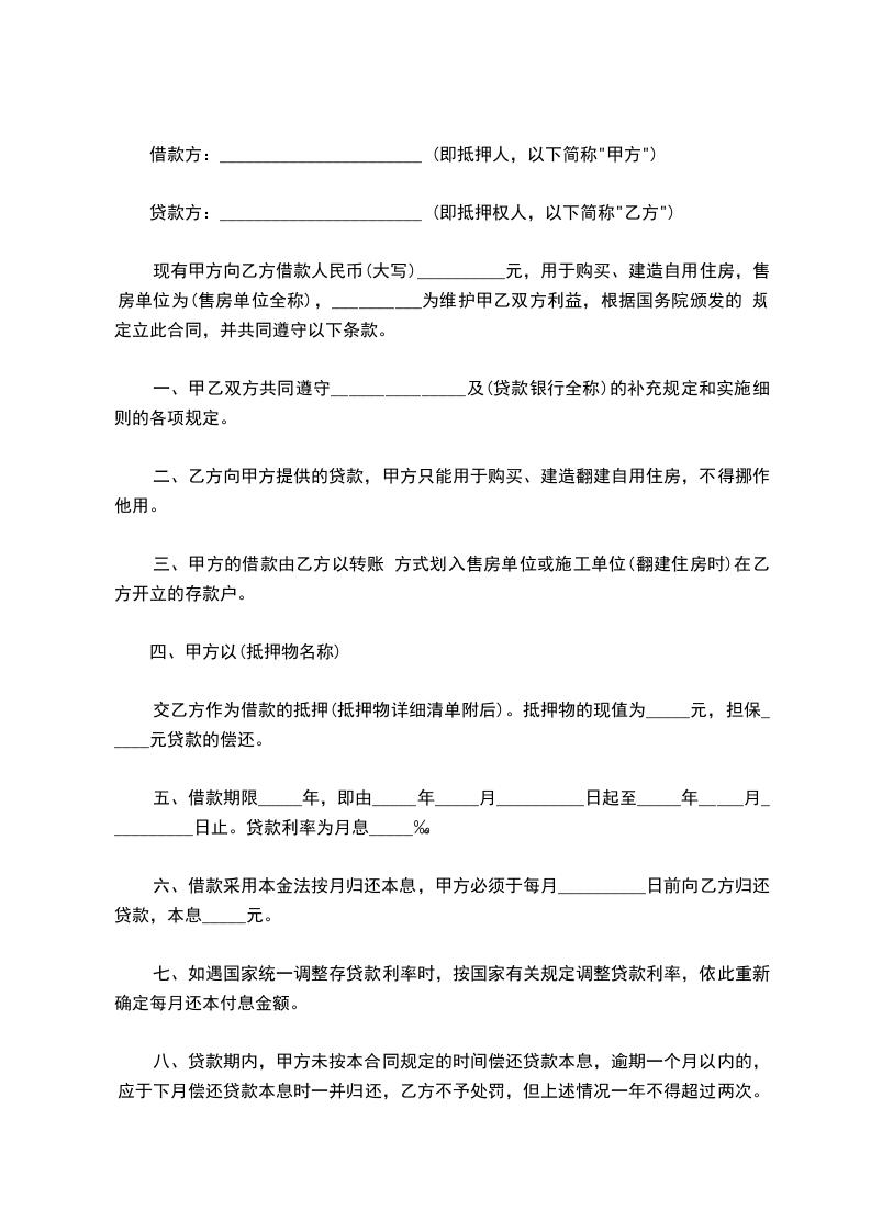 一、甲乙双方共同遵守《职工住房抵押贷款办法》及其补充规定和实施细则的各项规定。