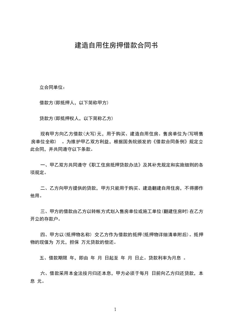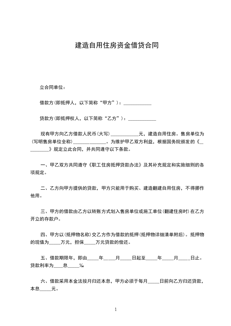 现有甲方向乙方借款(大写)元,用于购买、建造自用住房。售房单位为(写明售房单位全称) 。为维护甲乙双方利益,根据国务院颁发的《民法典》规定立此合同,并共同遵守以下条款。