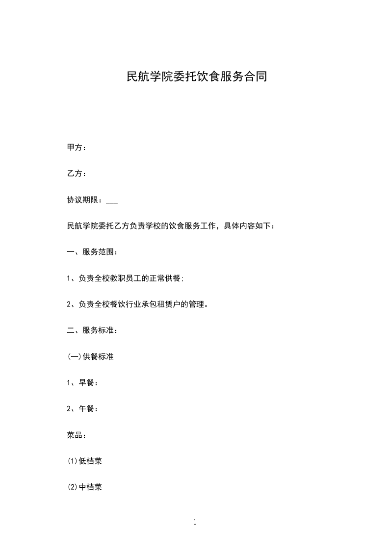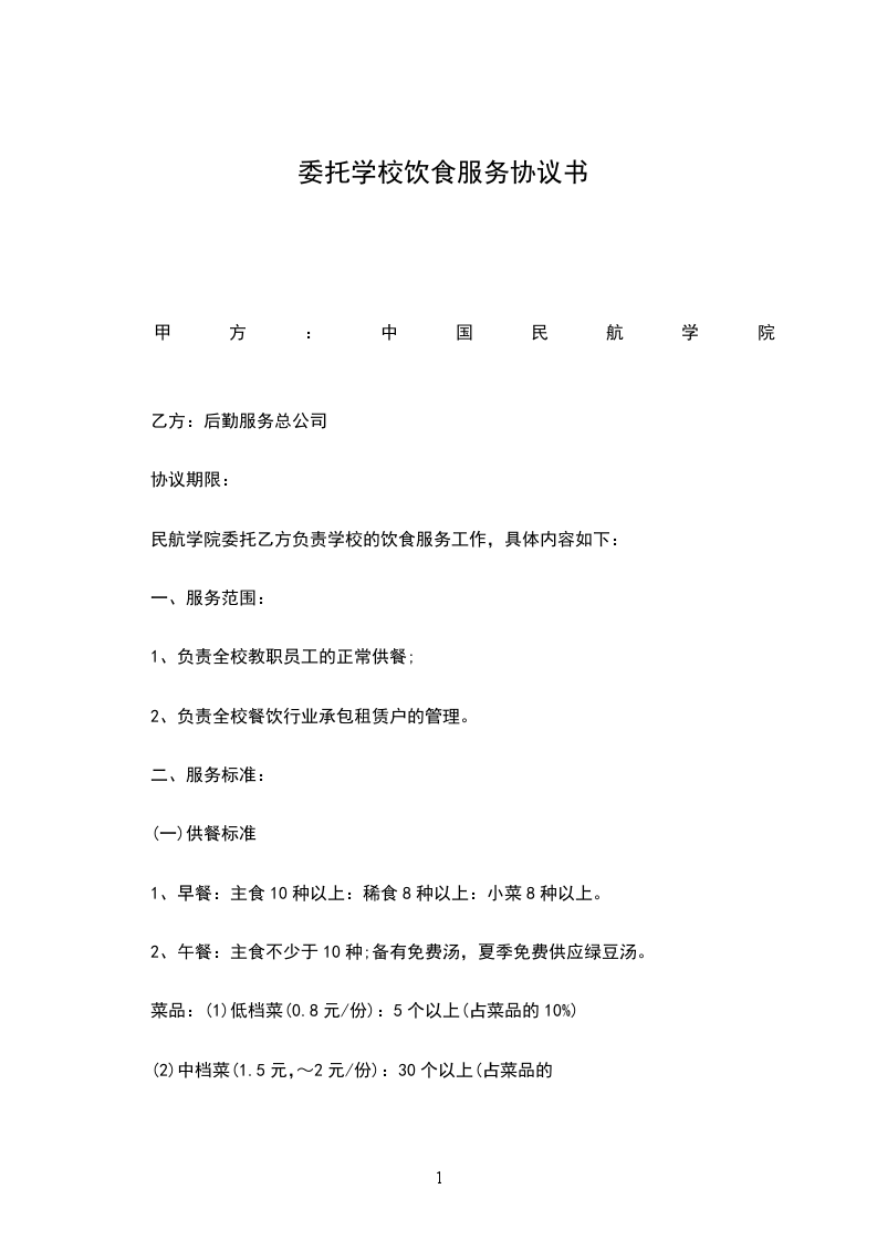 民航学院委托乙方负责学校的饮食服务工作,具体内容如下: