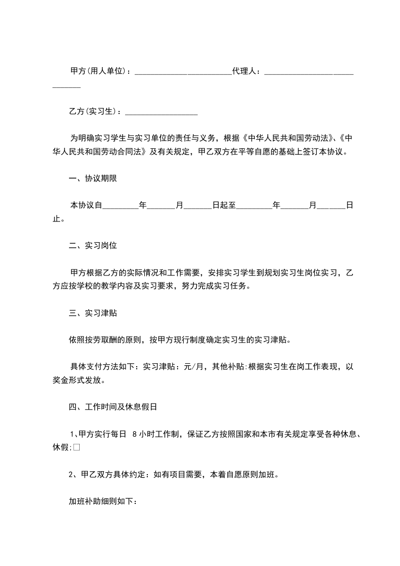 依照按劳取酬的原则,按甲方现行制度确定实习生的实习津贴。