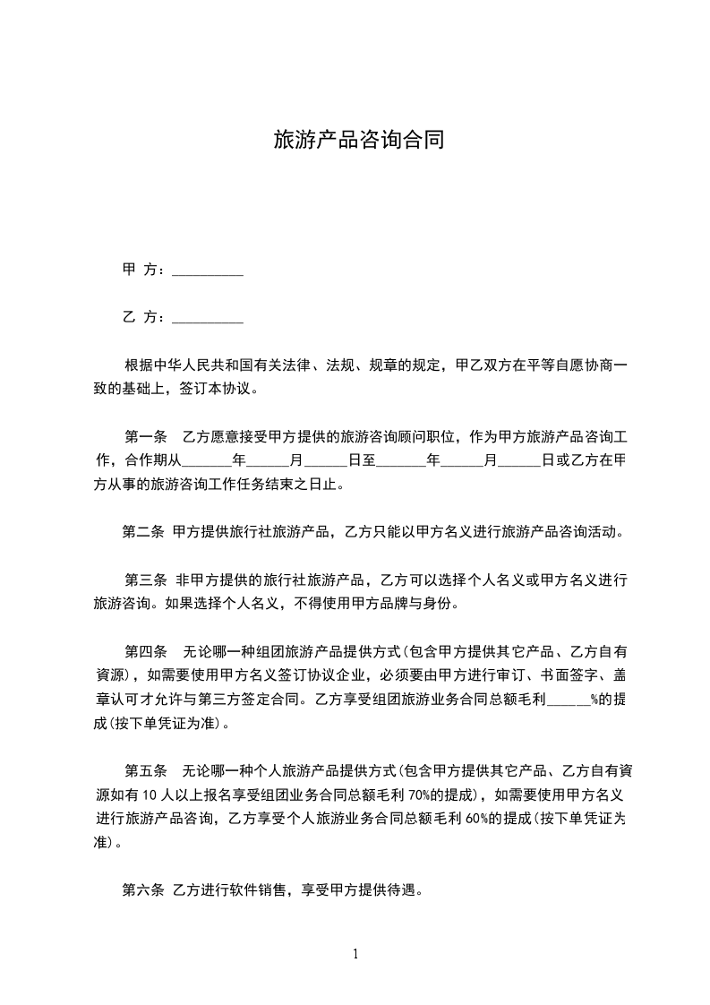 第六条旅游的交通工具: 第三条旅游的生活安排: 甲方为乙方提供食宿,每天伙食在________元至________元标准内。 第四条导游服务: 甲方为乙方提供导游服务,服务内容:____________________。 第五条旅游的费用: 本次旅游的费用总计____元(包括食宿在内)。在旅游出发前____日交甲方为乙方提供交通工具。________、________、________等交通工具都由甲方联系、提供,并保证乙方的旅游安全。