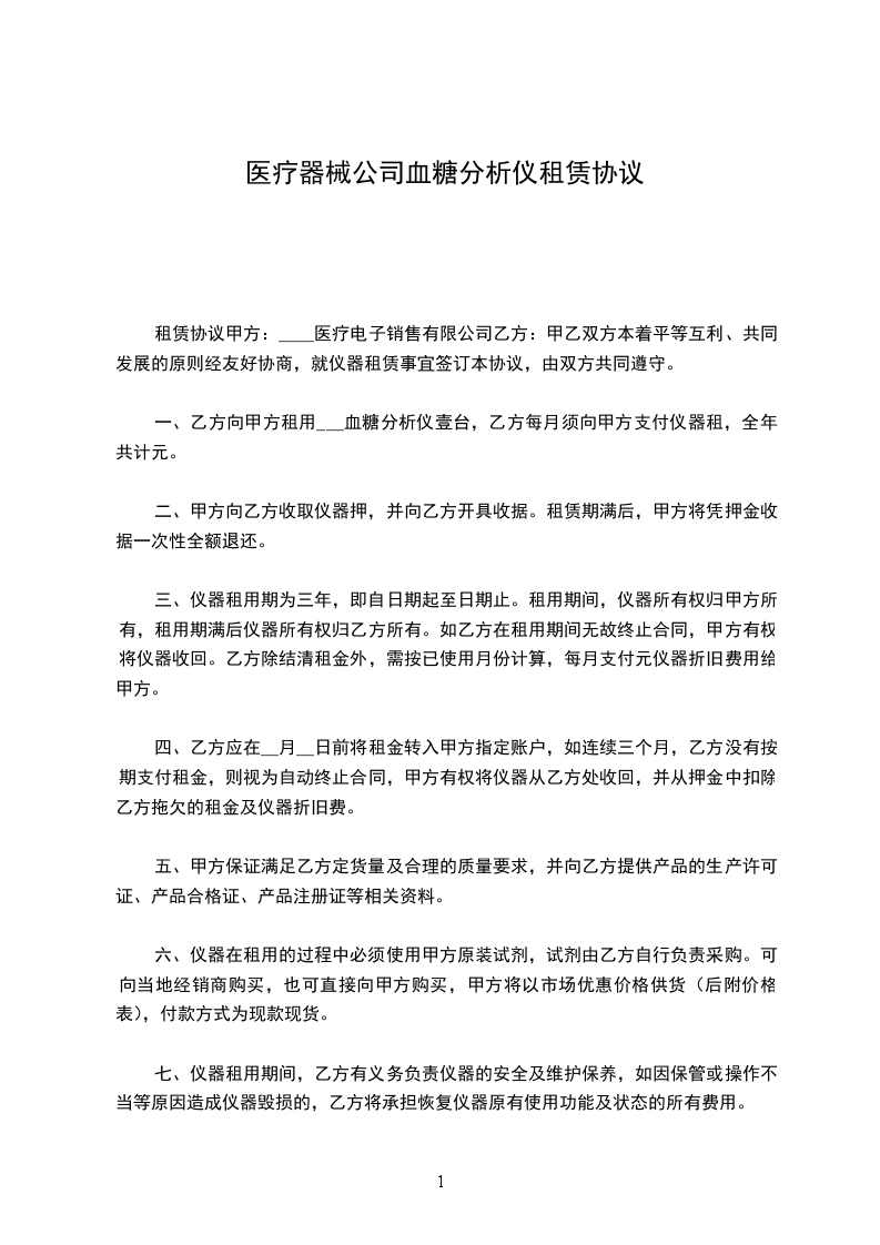 医疗器械血压表买卖合同