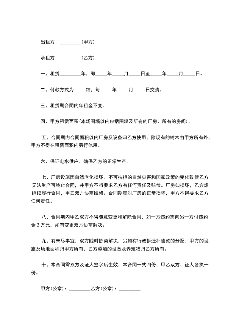 六、乙方不可私自转租厂房,未尽事宜,甲、乙双方协商解决。