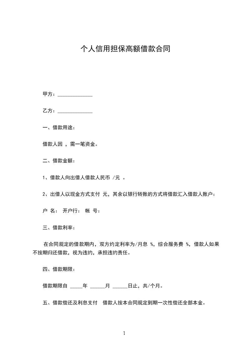 第一条 借款金额:人民币(大写)________;(小写)__________