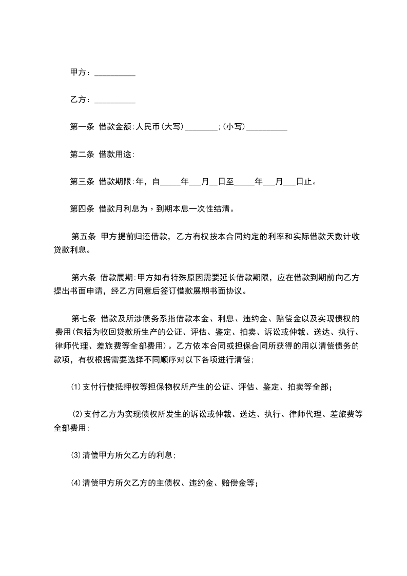第四条 借款月利息为﹐到期本息一次性结清。