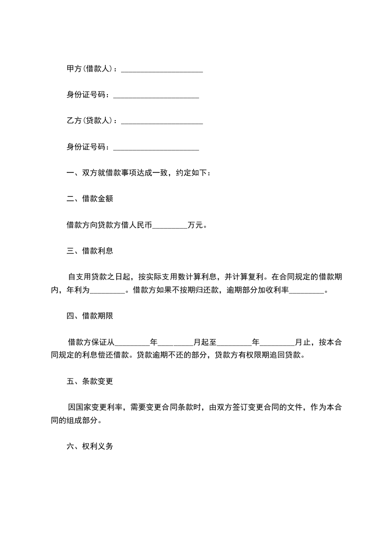 第三条 借款期限:年,自_____年___月__日至_____年___月___日止。