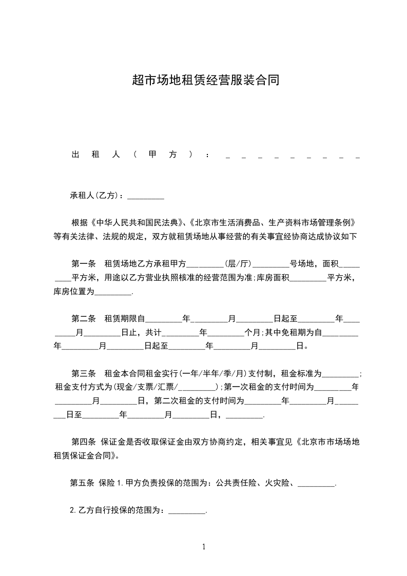 甲方提供超市 场地,营业面积(建筑面积) m2,乙方经营范围包括