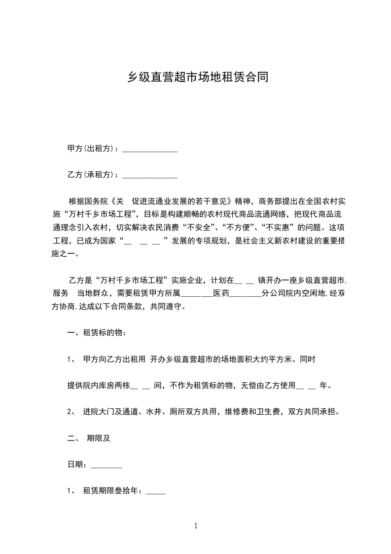 甲方:________综合超市 乙方: