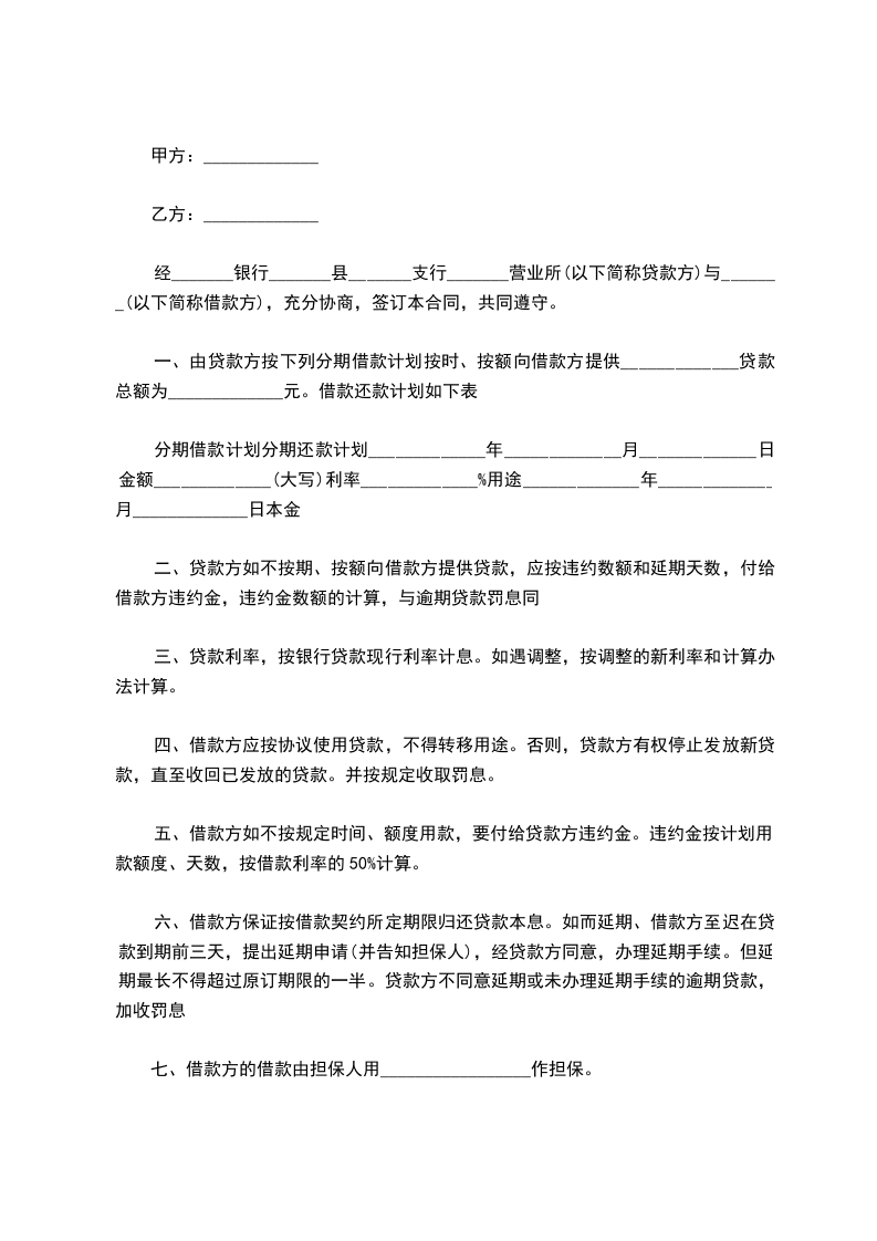 分期借款计划分期还款计划_____________年_____________月_____________日金额_____________(大写)利率_____________%用途_____________年_____________月_____________日本金