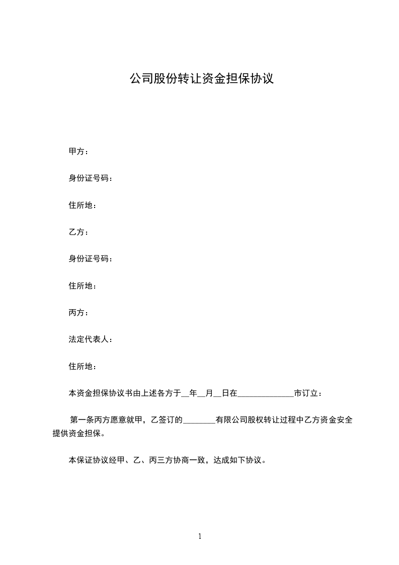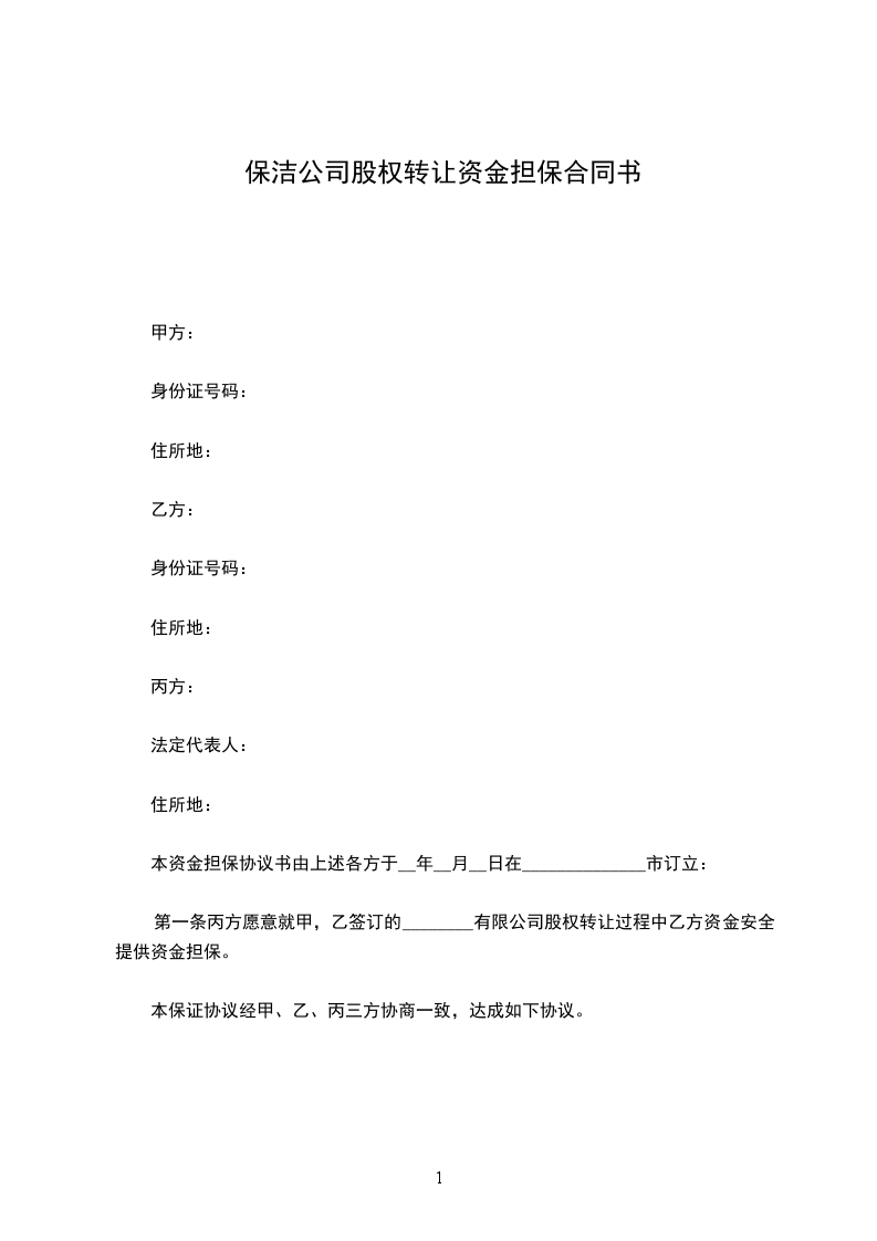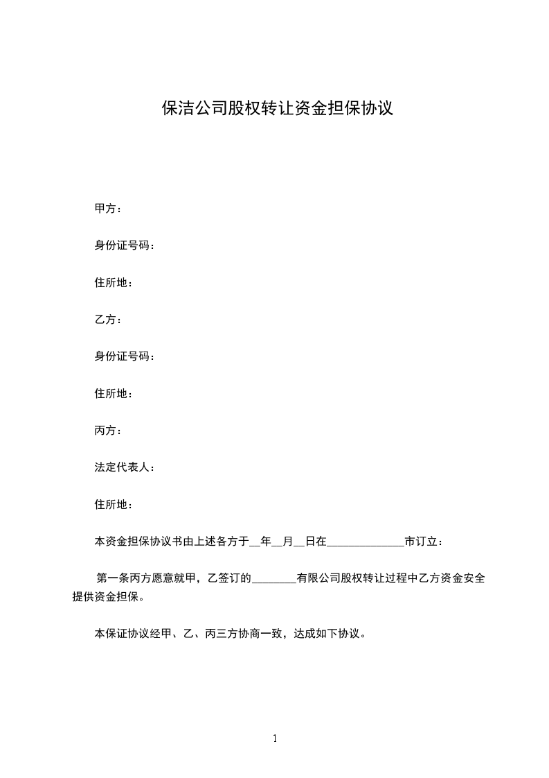 第一条丙方愿意就甲,乙签订的________有限公司股权转让过程中乙方资金安全提供资金担保。