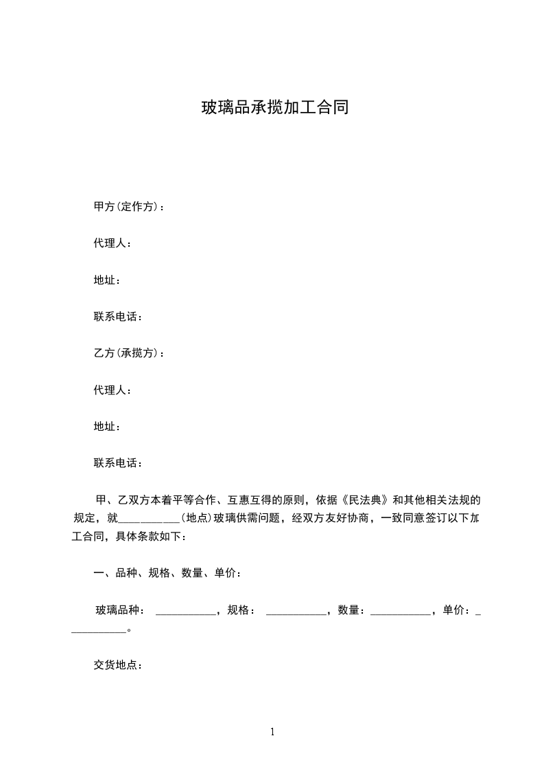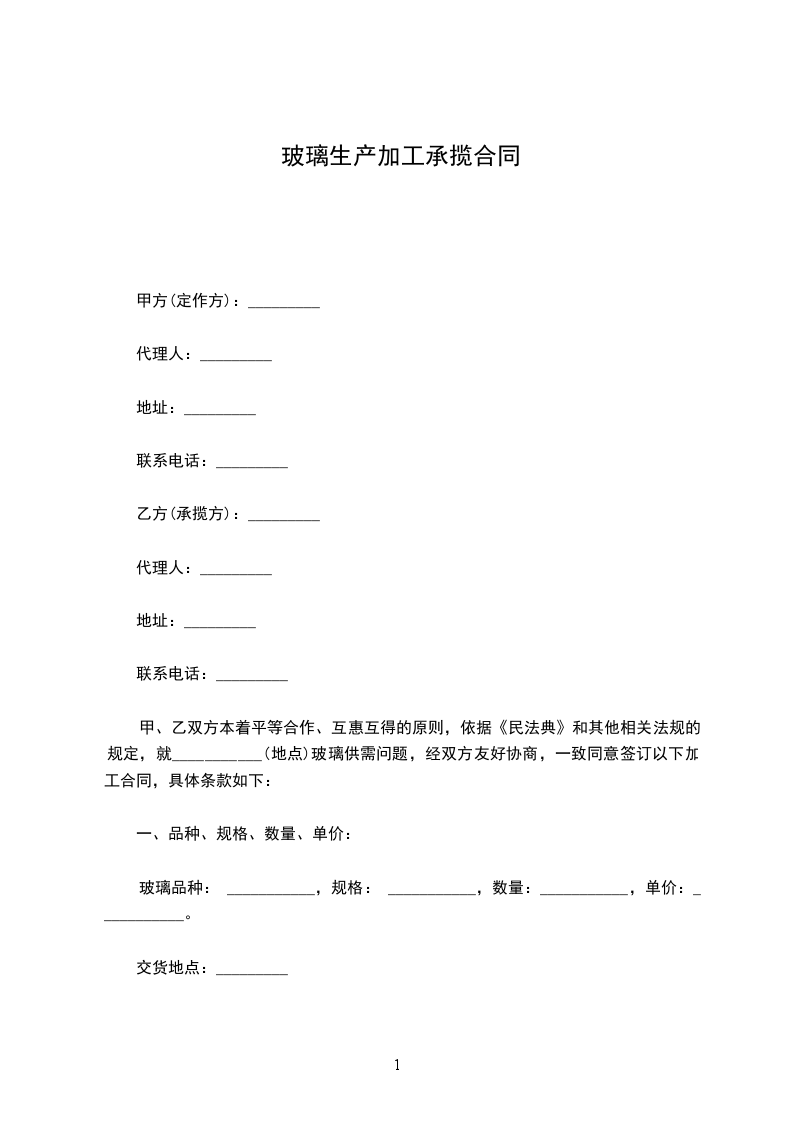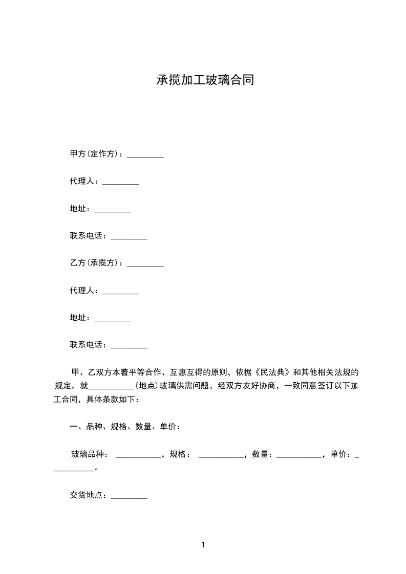 甲、乙双方本着平等合作、互惠互得的原则,依据《民法典》和其他相关法规的规定,就___________(地点)玻璃供需问题,经双方友好协商,一致同意签订以下加工合同,具体条款如下: