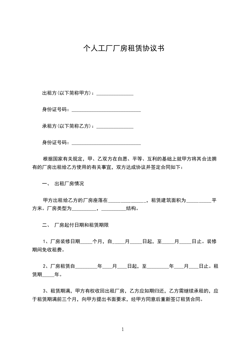 1、厂房装修日期_____个月,自_____月_____日起,至_____月_____日止。装修期间免收租费。