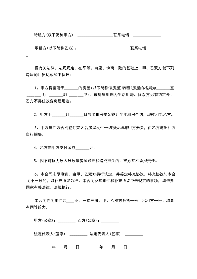 2、乙方不得擅自将房屋转租他人,应自觉遵守有关法律、法规。否则甲方有权终止合同,收回房屋并不退回押金。