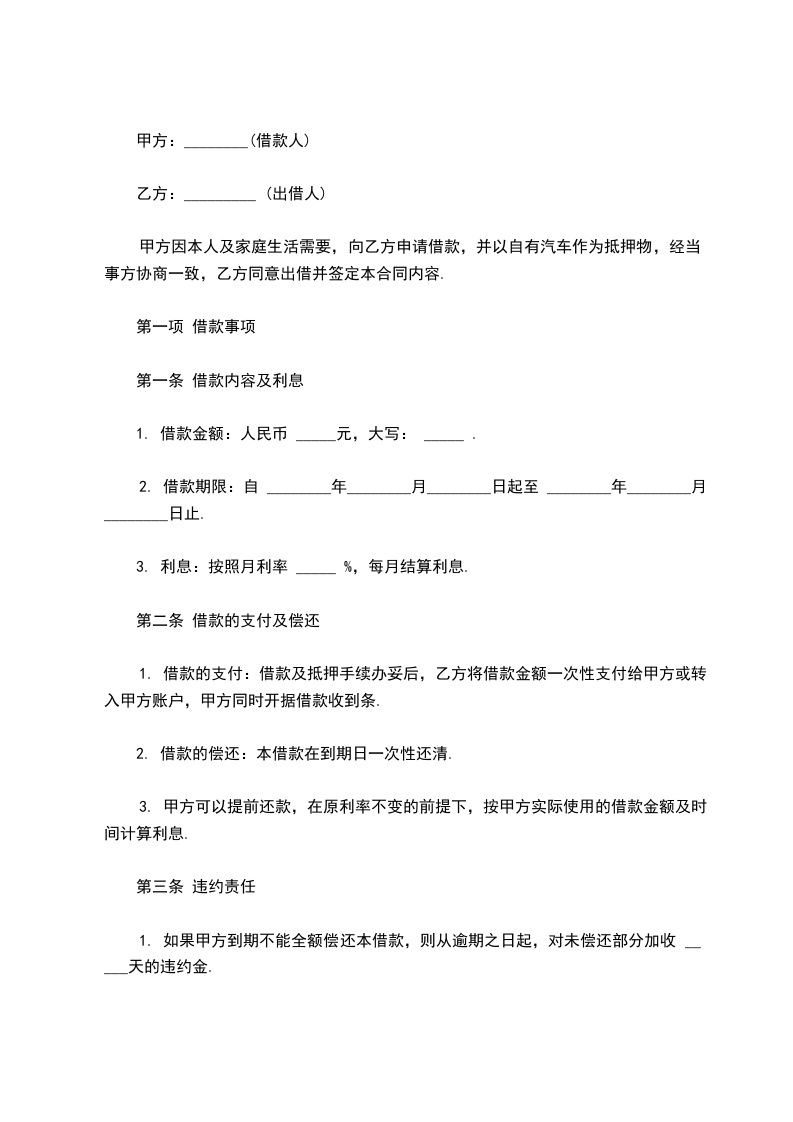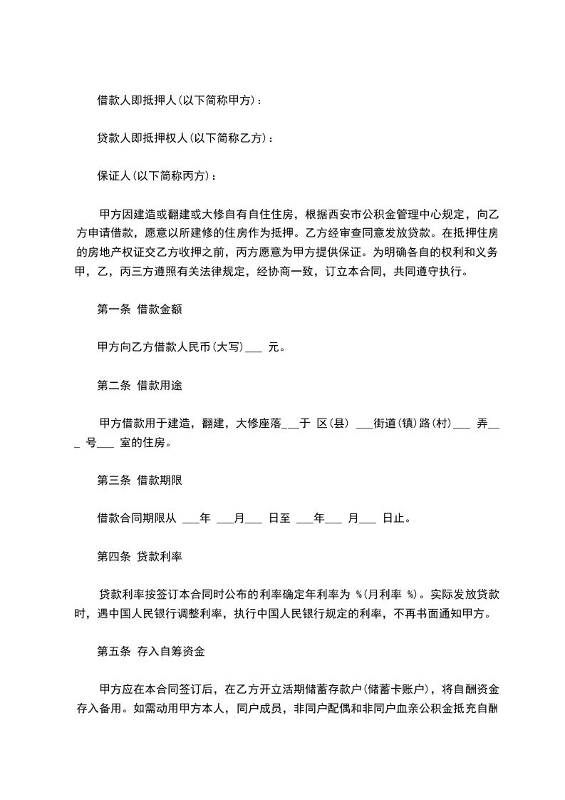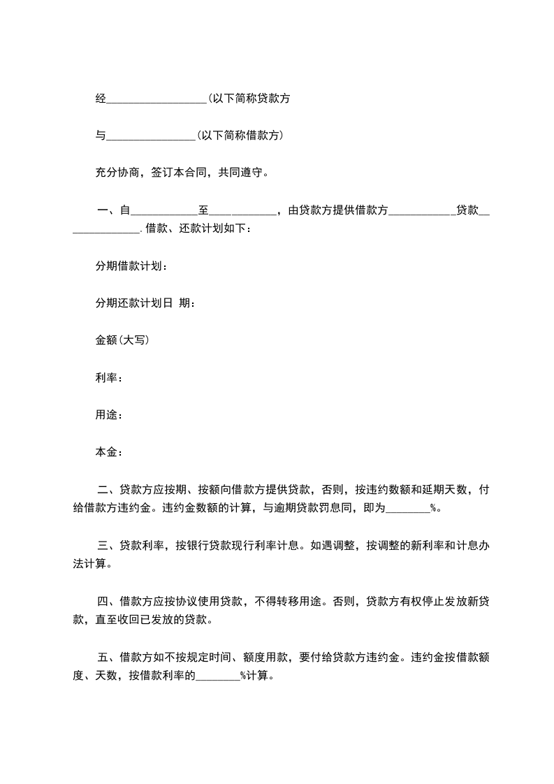 五、借款期限_________年,即由_________年_________月_________日起至_________年_________月_________日止。贷款利率为月息_________‰。