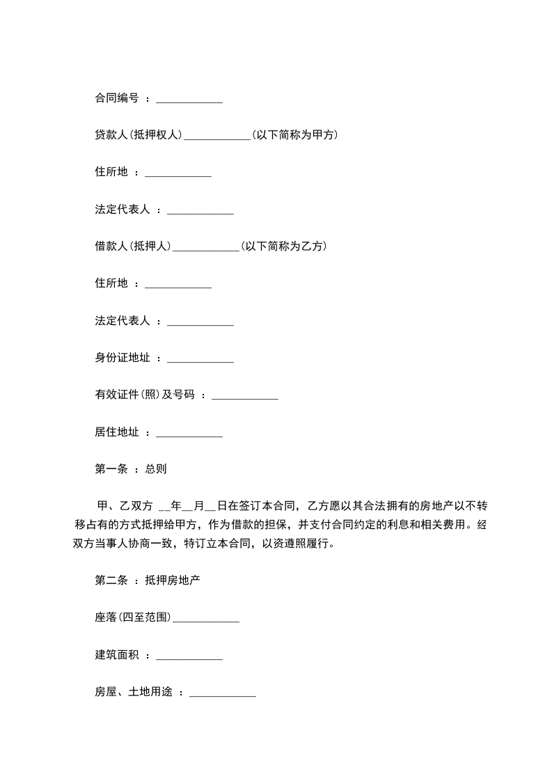 借款方:_________(即抵押人,以下简称“甲方”)