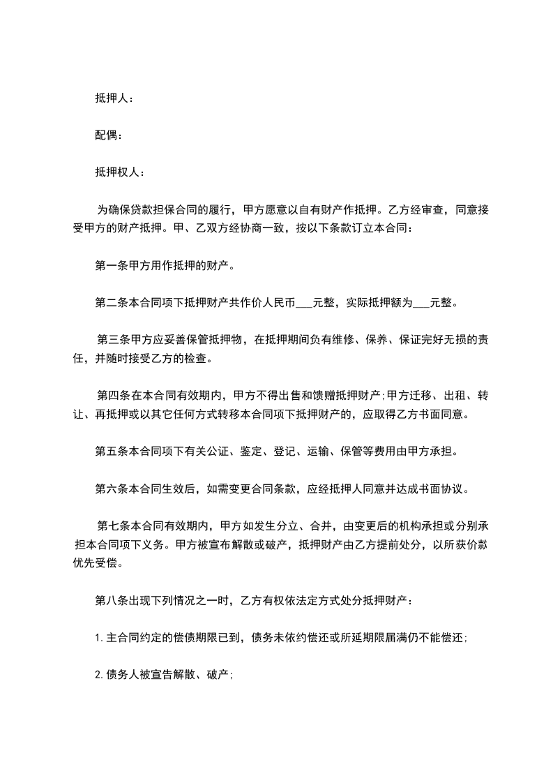 十二、甲方需对抵押物办理保险,保险单交乙方保管,抵押物如遇意外毁损,甲方应负责立即通知保险公司和乙方,保险公司的赔偿金应首先用于归还借款本息。若保险赔偿金不足以归还借款本息的,不足部分仍由甲方负责归还。