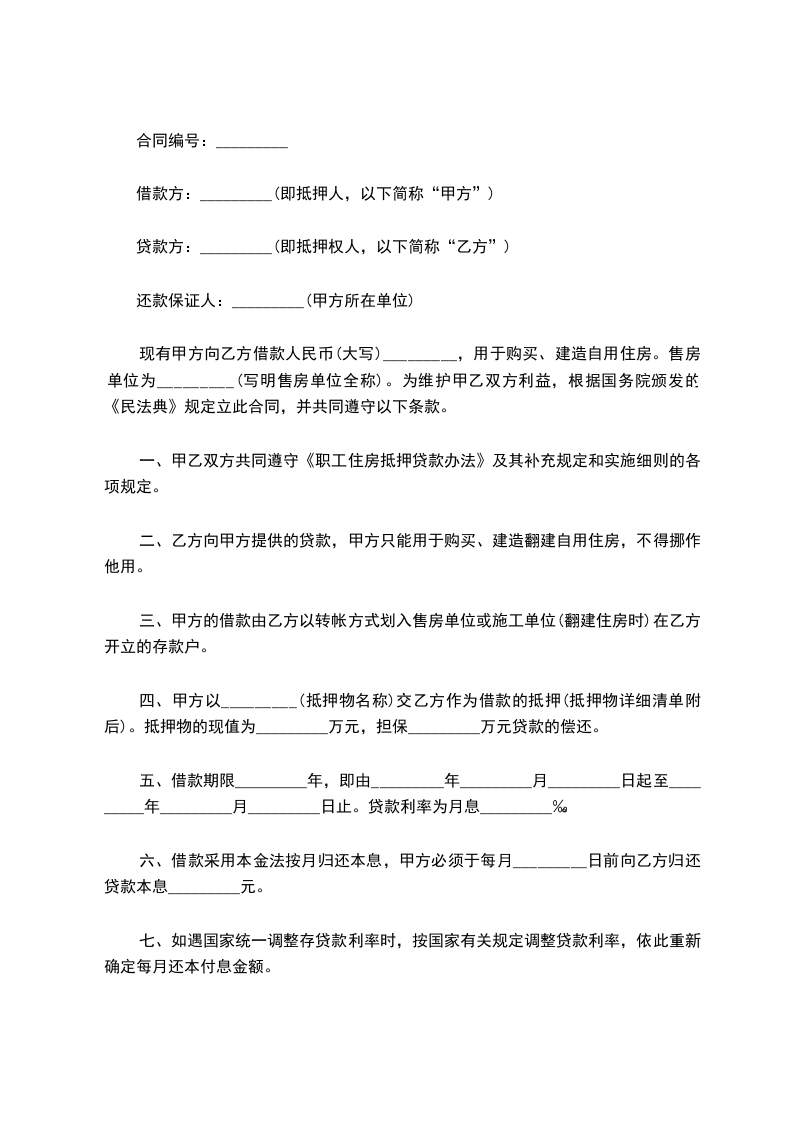一、甲乙双方共同遵守《职工住房抵押贷款办法》及其补充规定和实施细则的各项规定。
