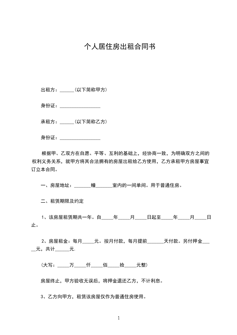出租人(以下简称甲方):_________________