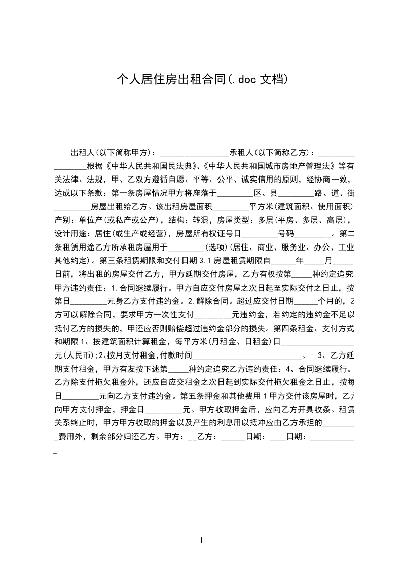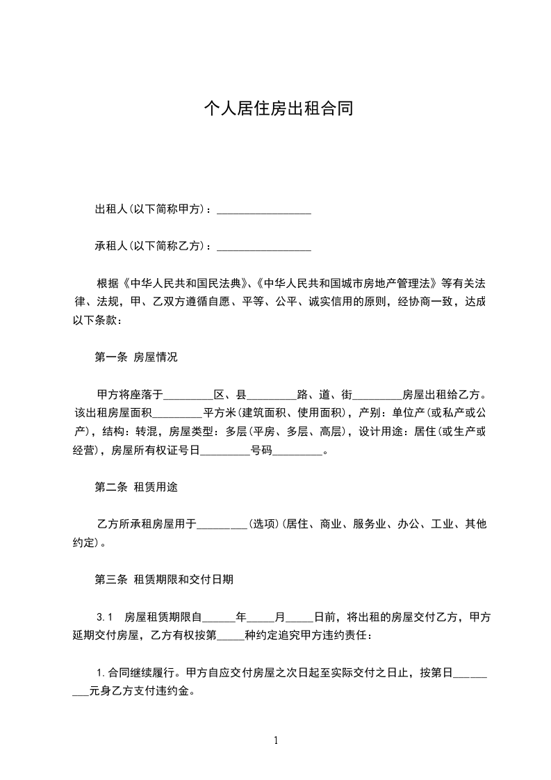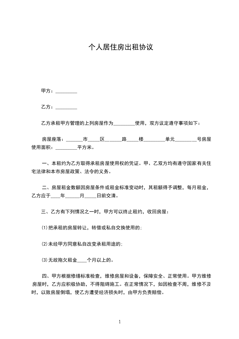 甲方将座落于_________区、县_________路、道、街_________房屋出租给乙方。该出租房屋面积_________平方米(建筑面积、使用面积),产别:单位产(或私产或公产),结构:转混,房屋类型:多层(平房、多层、高层),设计用途:居住(或生产或经营),房屋所有权证号日_________号码_________。