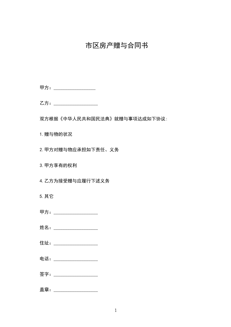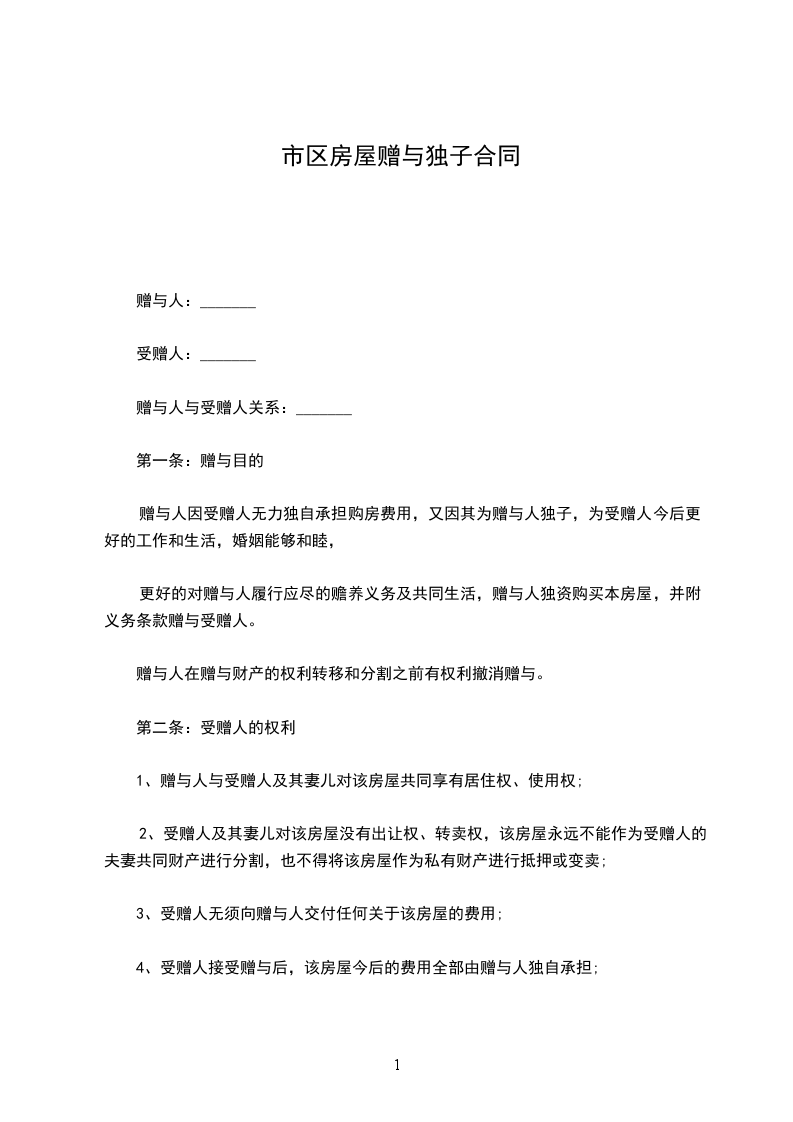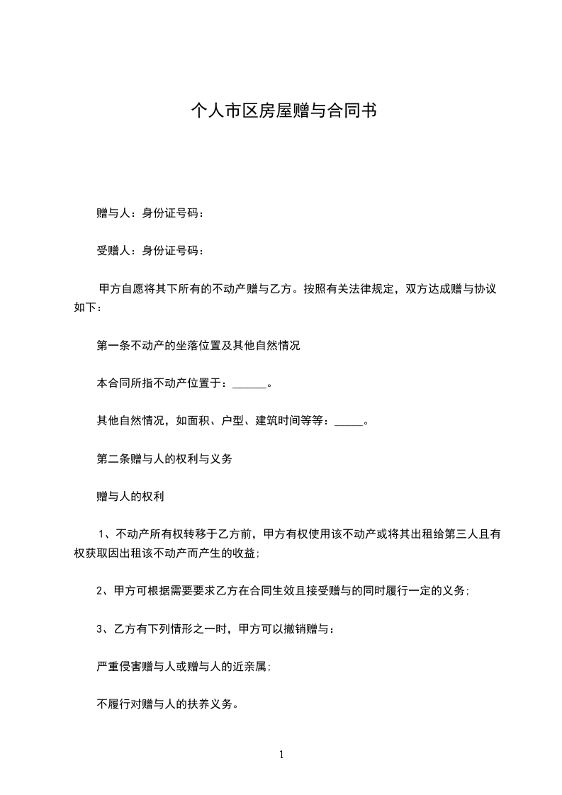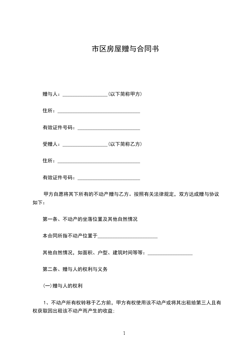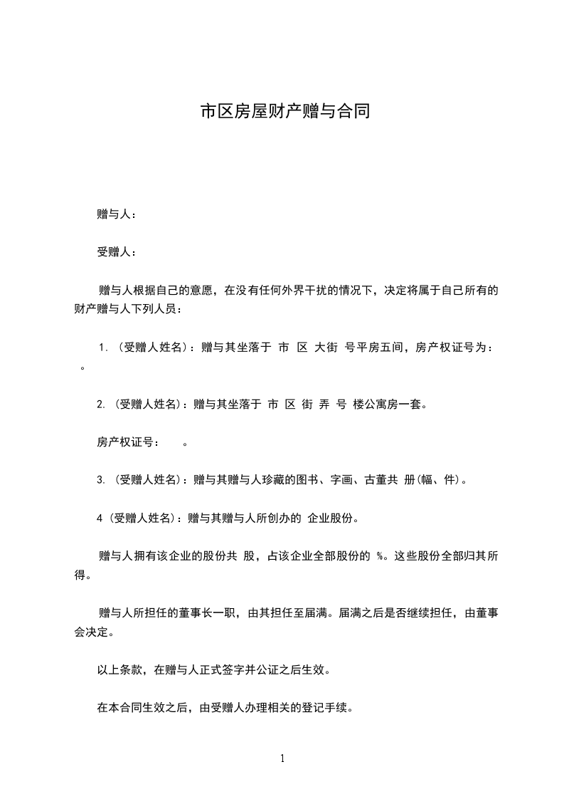 1. (受赠人姓名):赠与其坐落于 市 区 大街 号平房五间,房产权证号为: 。