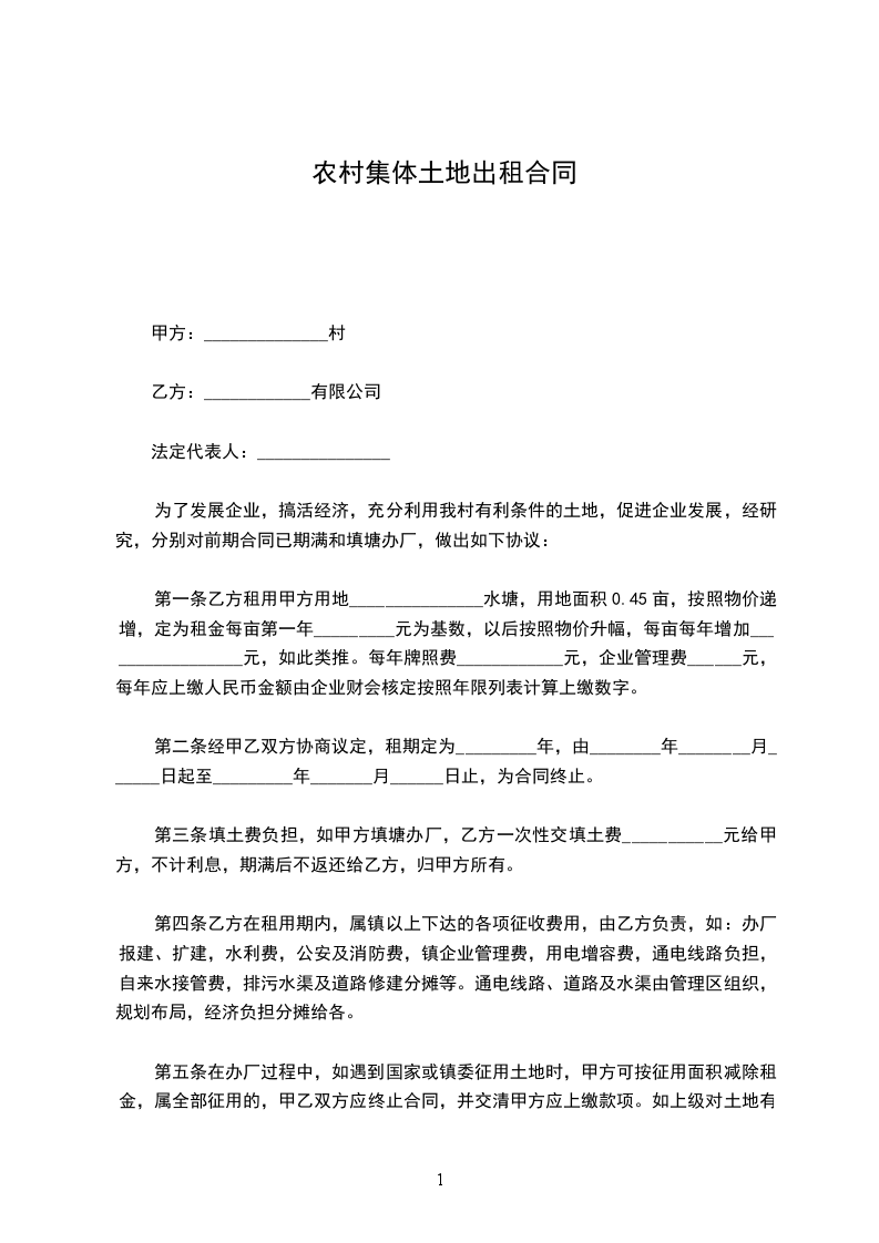 第一条甲方出租给乙方的集体建设用地使用权的地块位于(详见《土地使用证》附件),面积为_____平方米(合亩),其宗地位置与四址范围如甲,乙双方确认的附图所示。