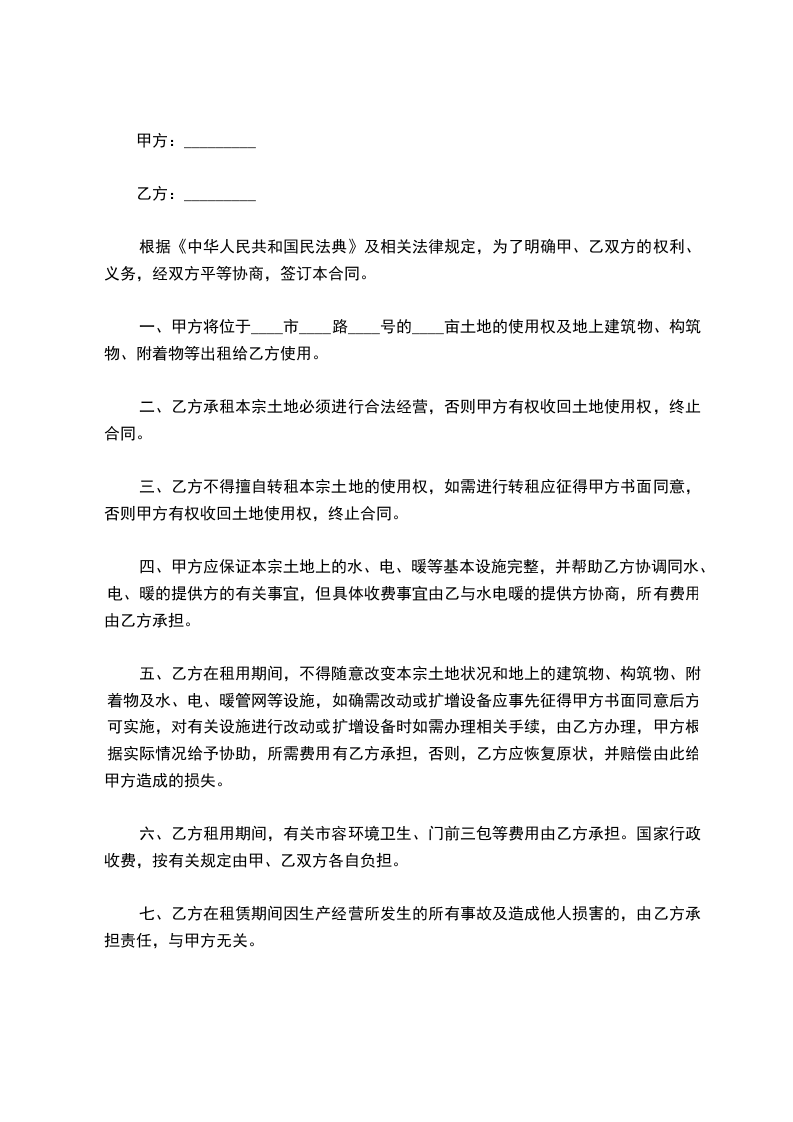 第七条乙方依据本合同租赁方式取得的土地使用权不得转让,转租,抵押。