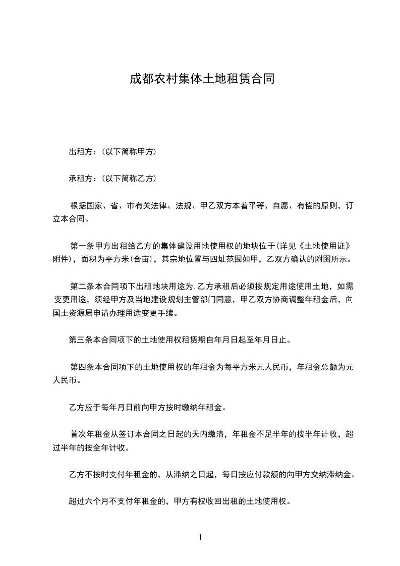 第四条本合同项下的土地使用权的年租金为每平方米元人民币,年租金总额为_____元人民币。