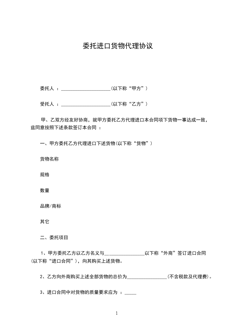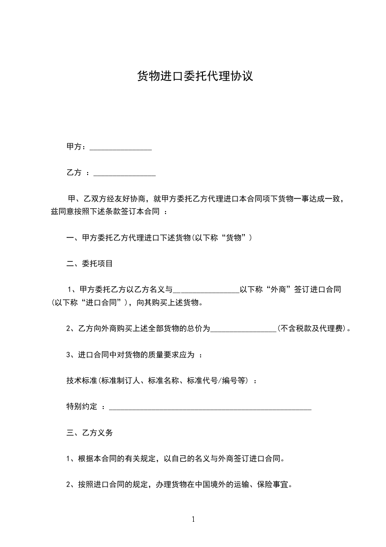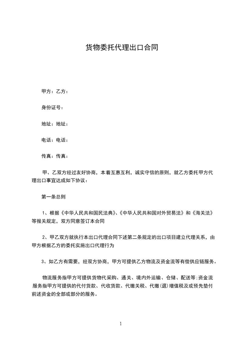 1、标的:乙方委托甲方代理从口岸出口等产品。