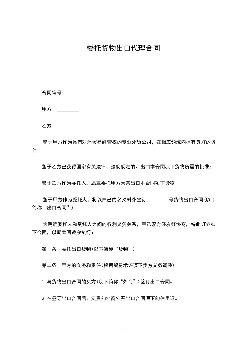 甲、乙双方经过友好协商,本着互惠互利,诚实守信的原则,就乙方委托甲方代理出口事宜达成如下协议: