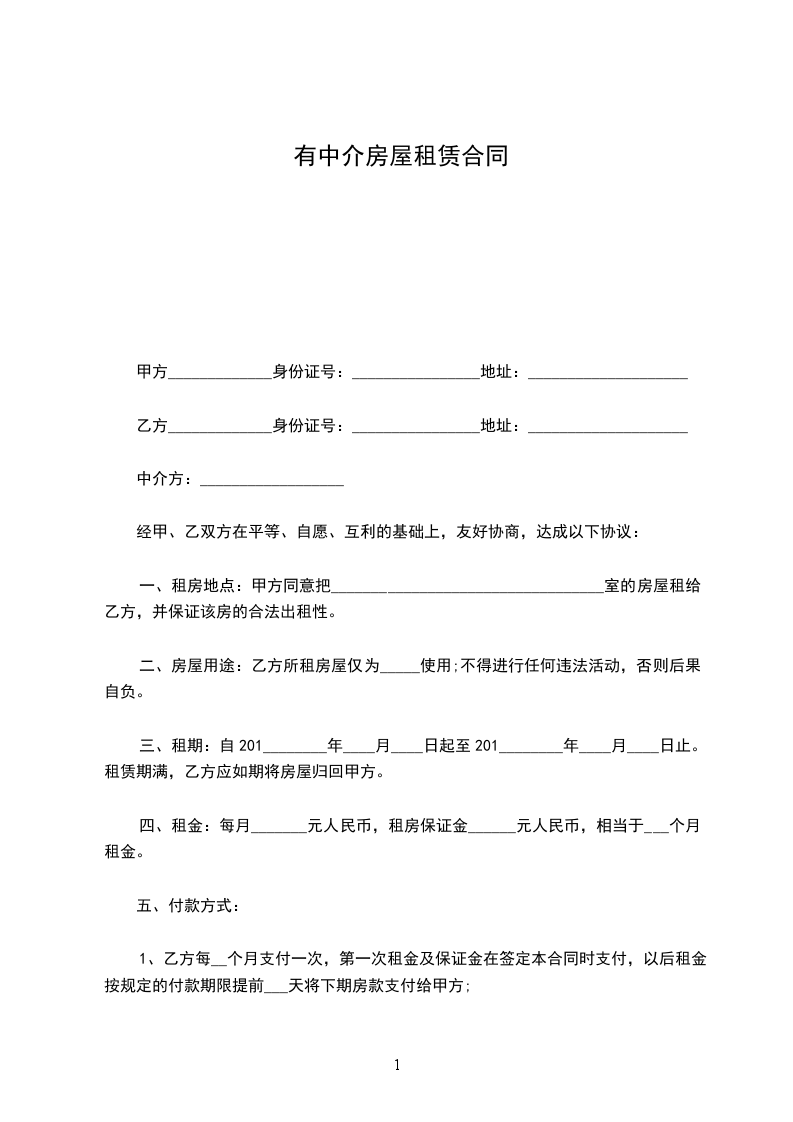 2. 该房屋租金支付方式如下:每 为一个付款期,乙方在每个付款期前______________天内,向甲方支付下一期房租。