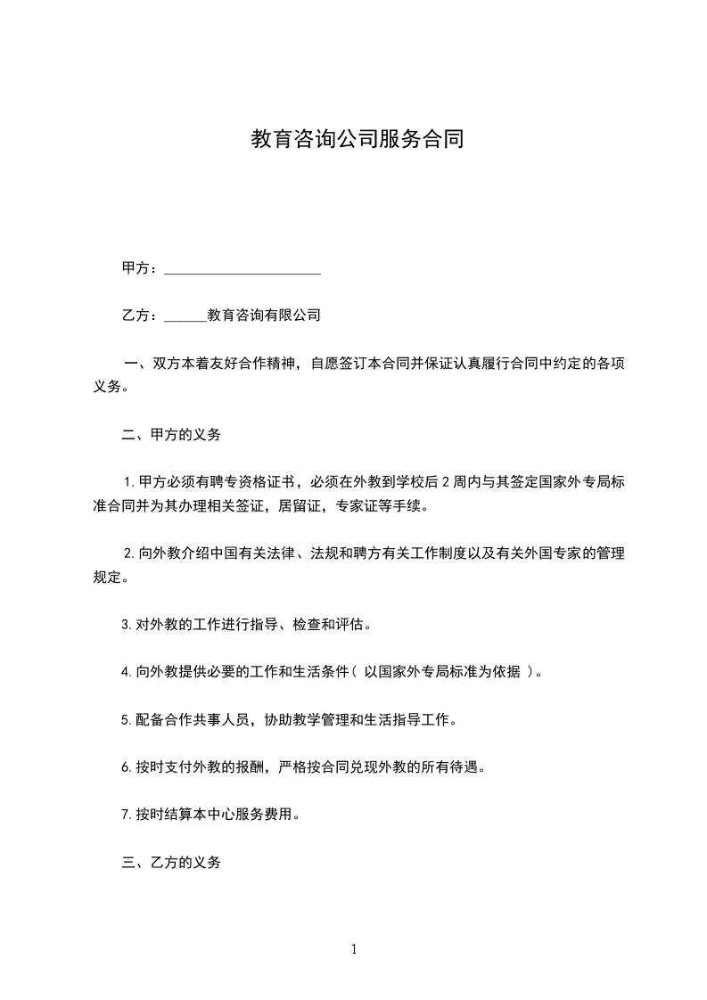 乙方:______教育咨询有限公司