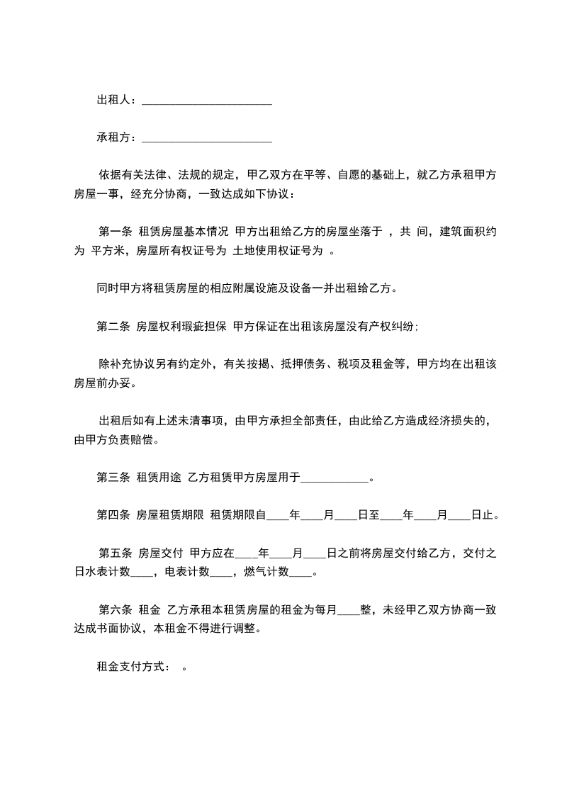 租赁期:从_______年_______月_______日至_______年_______月_______日。