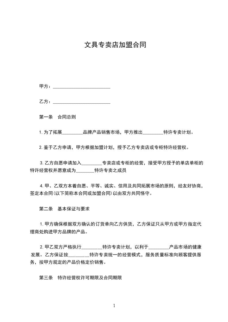 2. 加盟店是根据甲方销售策略设立,其店装潢、布置标识等由甲方统一设计,并唯一销售甲方品牌产品的店面。